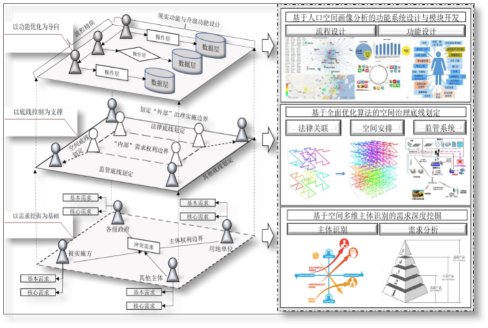 针对空间快速变革进程中的现代化智能治理诉求,构建空间智能治理的“需求挖掘—底线划定—功能设计”研究框架,在保障空间安全的前提下贴合设计和开发符合用户诉求的功能系统,推进实现空间智能化治理的虚拟仿真与择优演化。